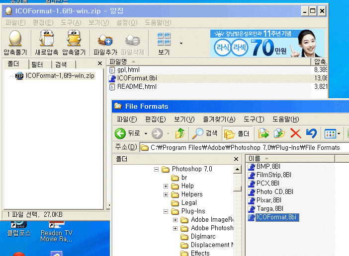 별도 설치 없이 다운 받고, 압축파일에서 포토샵 하부의 플러그인에 File Formats 폴더로 옮겨 두시기만 하면 됩니다.
